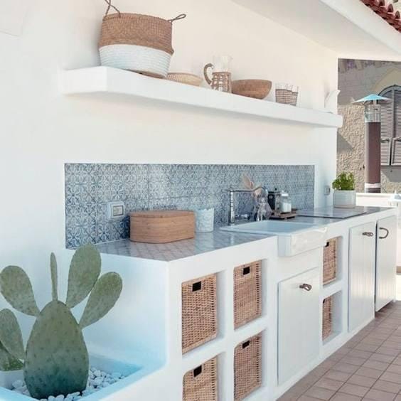 Per proteggerti dal sole cocente, niente di meglio che una tenda o un ombrellone colorato. Se vuoi un tocco chic, opta per un pergolato con tende leggere che creano un' atmosfera da spiaggia.