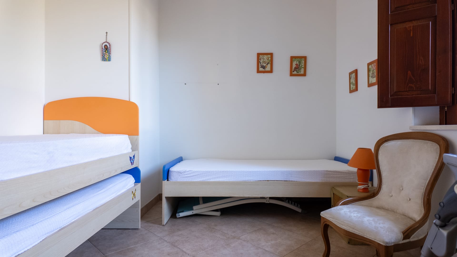 - a sinistra, la zona notte composta da camera matrimoniale, due camerette, ripostiglio e bagno