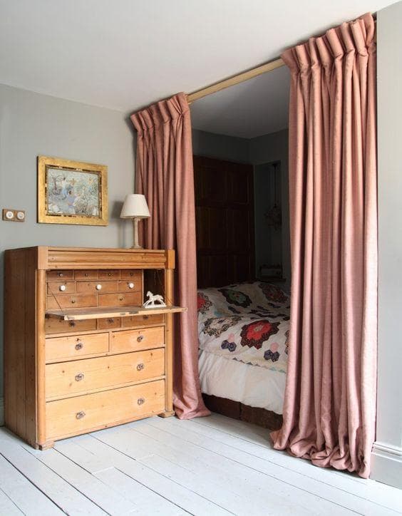 In camera da letto le tende non solo hanno un ruolo estetico, devono avere anche la funzione di oscurare l' ambiente per favorire il sonno.